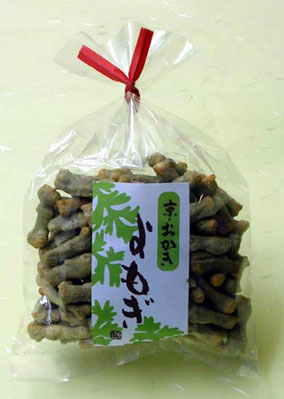 よもぎをたっぷりとつき込んだ軽い塩味のあられです。